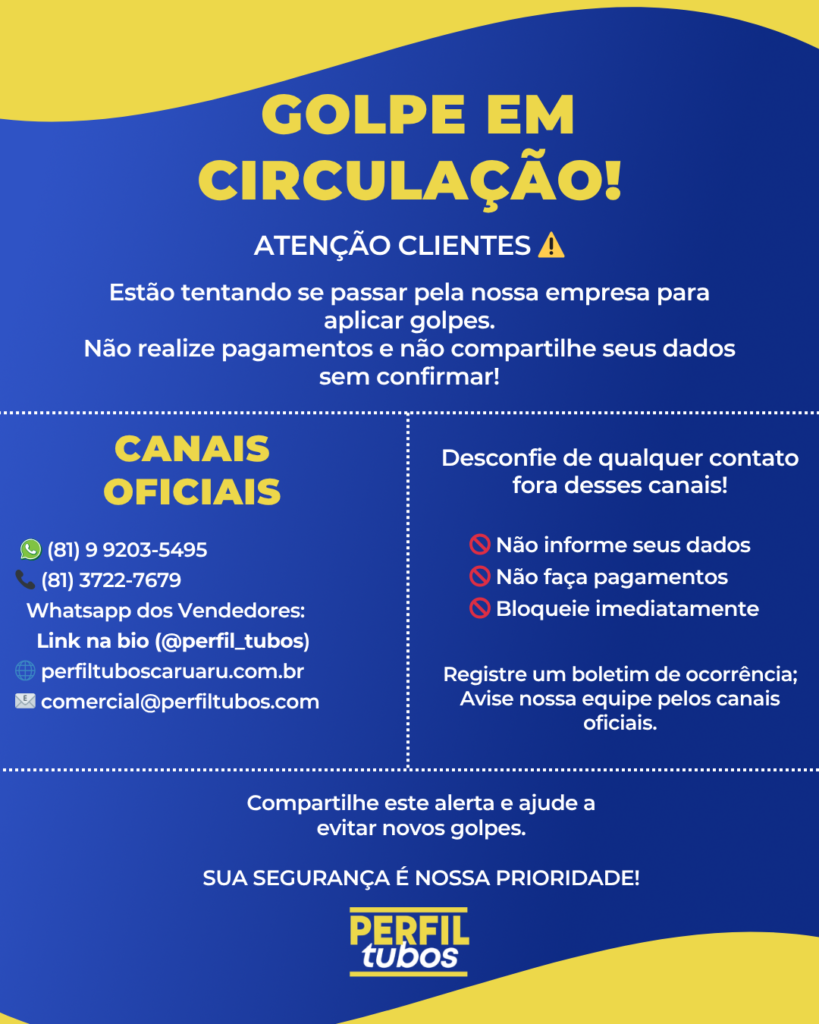Com mais de 28 anos de experiência no mercado, a PERFIL TUBOS se consolida como referência em produtos de Ferro e Aço para Construção Civil e Serralharia. Ofereça a maior variedade de materiais, desde tubos, chapas, perfis e cantoneiras, reunindo tudo o que você precisa em um único lugar.